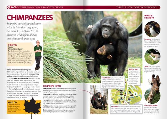For the 2010 guides, the editor and I went back to both Zoo’s afresh as new visitors. We toured both attractions accompanied by one of the head keepers and tried to replicate the experience of visiting them with your own personal expert in the guides. The project was a labour of love for the team and our hard work paid off when it was awarded Best Brochure at the 2010 APA awards. Produced by Think for The Zoological Society of London